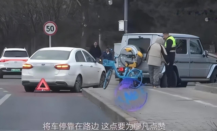 廖凡在2026年1月21日开车过程中遇到追尾事故。他驾驶的老款奔驰大G在路口正常行驶时,被后车碰撞。事故发生后,他下车先用手机拍摄现场照片作为证据。完成拍摄后,他将车辆移到路边安全位置,避免影响后方通行。整个过程他未与后车司机发生争执,而是安静等待交警到来。车身损伤程度轻微,无人受伤。